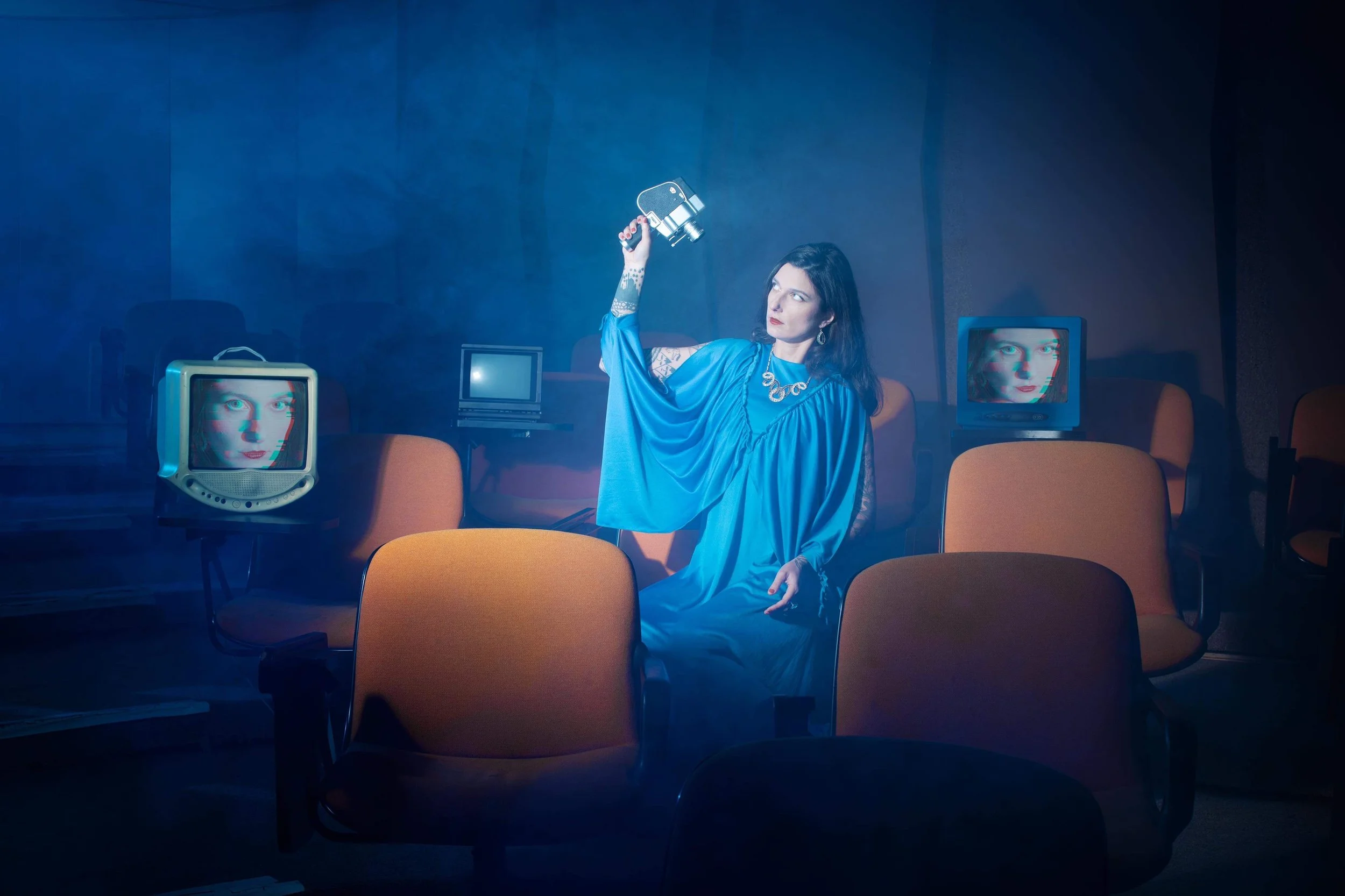 Une photographe interprète leurs mots en cent tableaux. Abigaïl Auperin dialogue en images avec les nouvelles, en accord avec la sensibilité´ des autrices qui posent, seules ou en compagnie de comédiens. Ces 100 photographies composent un métarécit qui aiguise autrement la sensorialité, en jouant sur les codes du cinéma de genre et de la peinture classique. Un voyage sensuel dans une esthétique entre David Lynch et Guy Bourdin.